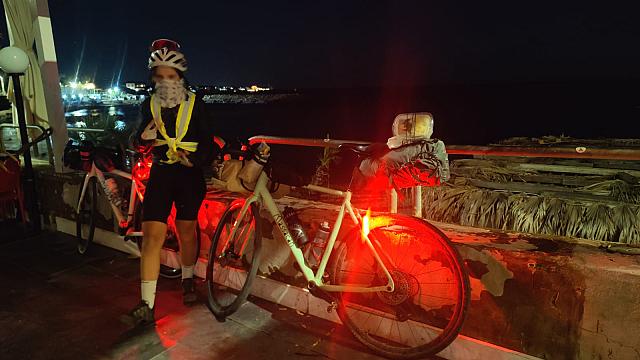 Puisque la nourriture était le réconfort de ce voyage , à Pise nous avons vainement profité d’une visite nocturne de la ville en passant devant la Tour après avoir dévoré une pizza ! Pour la suite, nous finirons de nuit, en profitant de discussion au milieu d’hôtels et plages luxueuses, de routes larges et inoccupées – quel bonheur, après avoir été écrasé la journée durant -, de l’air marin, sans oublier les sentiers de gravel. Par ailleurs, comme il est de tradition lors de nos aventures de longue distance, je n’oublierai pas de donner un coup de guidon pour envoyer Alex dans les orties, ce qui la laissera un peu fâchée !