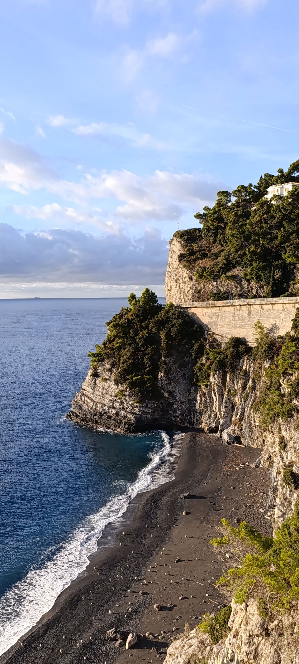 S’il s’agit d’un petit col culminant à 615 mètres de haut, il nous faut néanmoins grimper depuis le niveau de la mer et subir le tintamarre automobile, coutumier à chacun de nos départs matinaux. Plus nous approcherons le col, plus le calme et le plaisir propre à ce type d’ascension dévoileront leur visage. Nous avons, à raison, pris notre temps afin de contempler et manger. La route panoramique nous offrait des vues splendides.