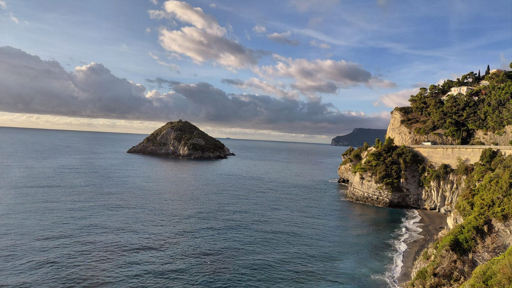 Départ en douceur le soleil réchauffe, une belle route de corniche le long de la côte sur un beau ruban noir.