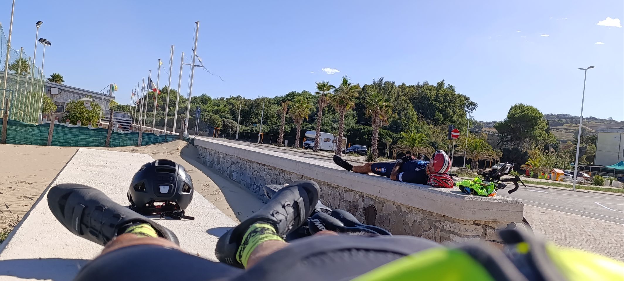 Un bel échauffement de 125kms par 25°C et un petit vent joueur, vue sur la côte Adriatique, les oliviers et les Pouilles poubelles !!! Affligeant ces décharges sauvages partout…