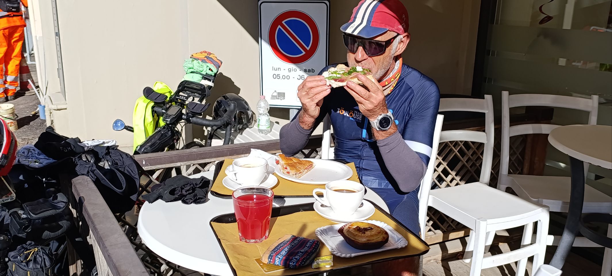 Avant San Remo on tombe sur un retraité énervé en vélo électrique sans casque qui lâche les mains... Bon on prend sa roue 30mn /15 bornes, la moyenne augmente.