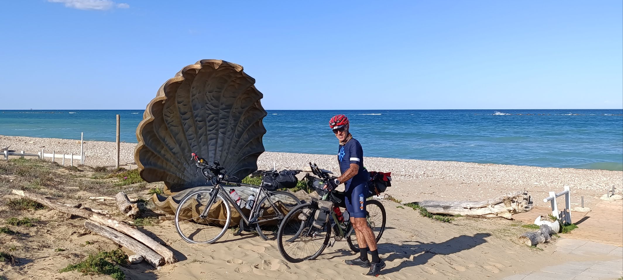 La Méditerranée est bien là avec un rayon de soleil et, exceptionnel depuis le départ, on a droit à 30 kilomètres le vent arrière qui nous pousse, waouh (on l’a eu dans le nez tous les jours sinon) !