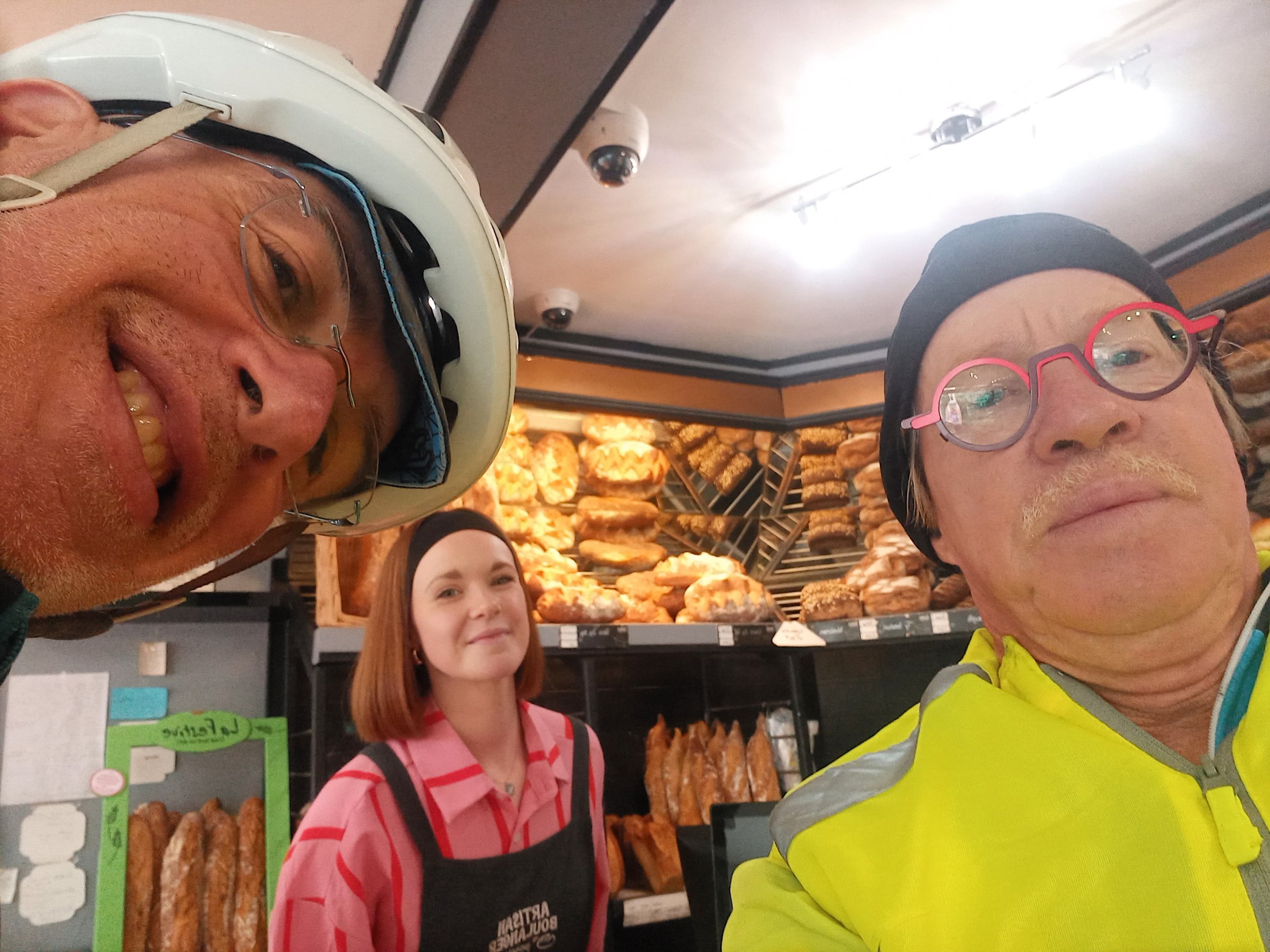 La Diagonale se poursuit vers Rostrenen, puis Mur-de-Bretagne où une première pause bien méritée permet de casser la croûte. L’énergie revient, les jambes tournent bien. On rejoint ensuite Loudéac, la boulangère nous accueille avec le sourire.